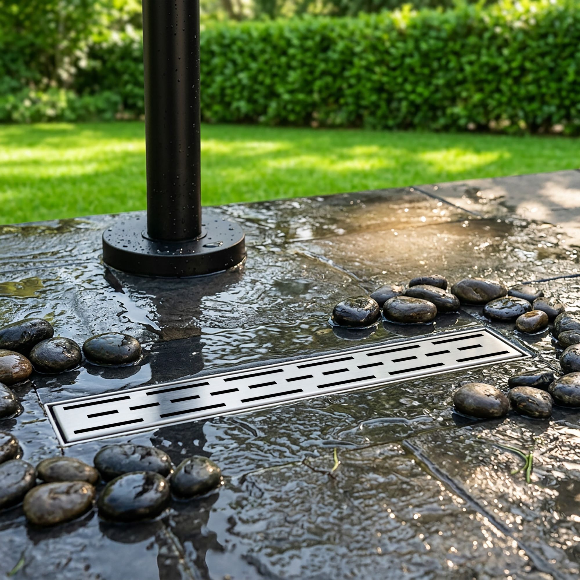 Die Eclipse Duschrinne besteht aus hochwertigem Edelstahl 304 und ist damit optimal für Feuchträume geeignet. Das Material ist rostbeständig, korrosionsresistent und langlebig. Auch bei regelmäßiger Nutzung bleibt die Duschrinne formstabil und optisch ansprechend.