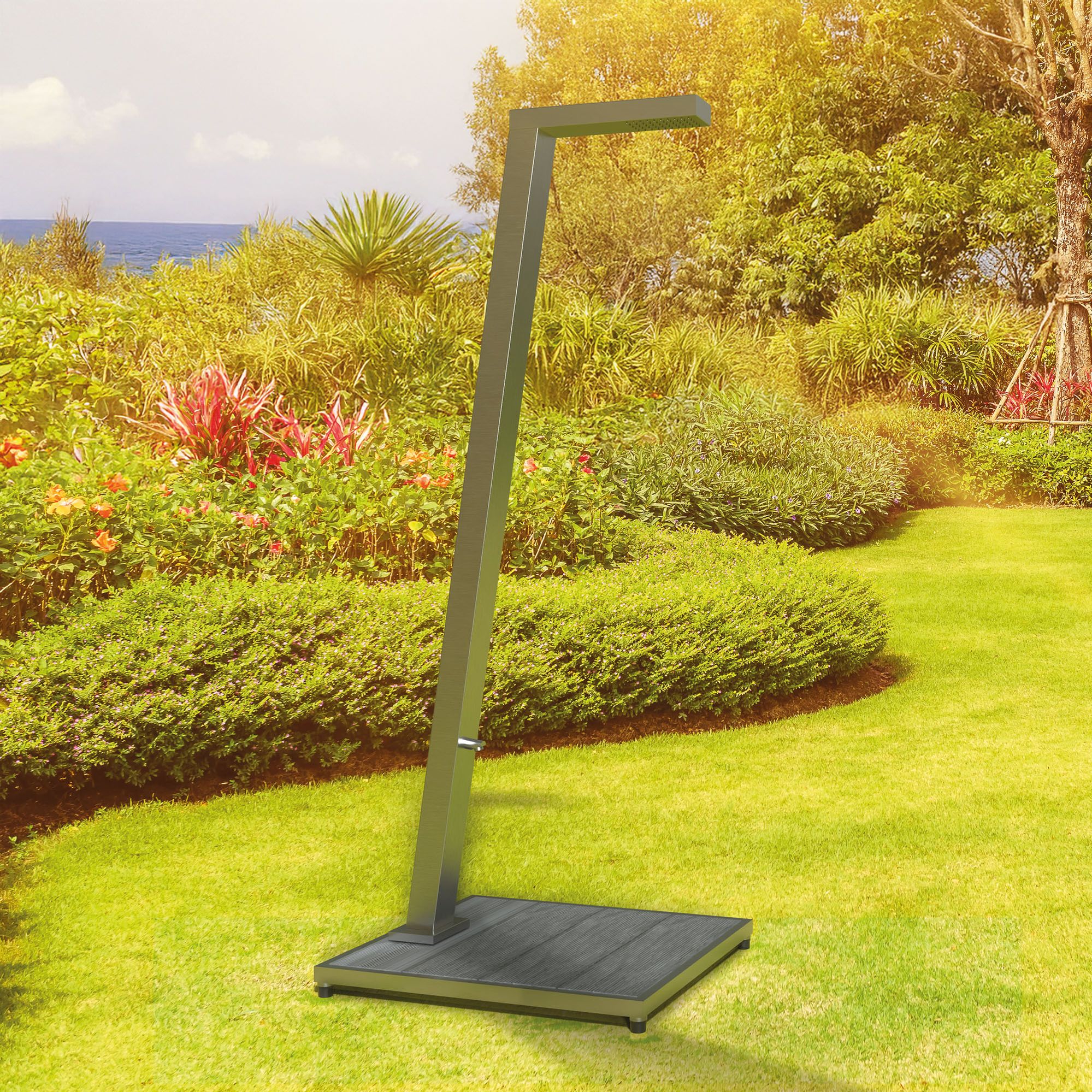 Für ein stimmiges Gesamtbild können Sie den passenden Duschboden VOLCANO (nicht im Lieferumfang enthalten) direkt mit bestellen. Er ist optimal auf unsere Außenduschen aus V4A-Edelstahl abgestimmt.