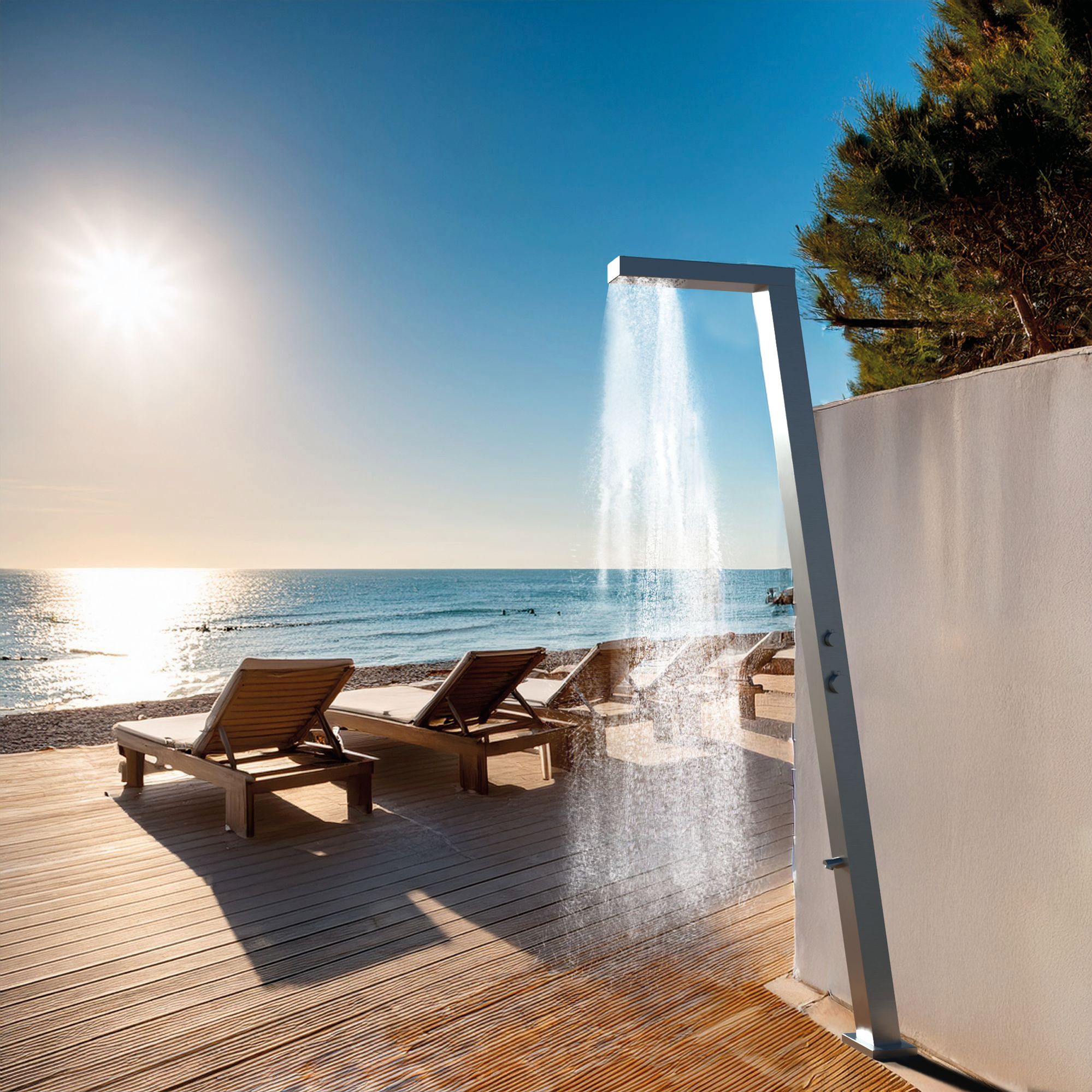 Erleben Sie pures Outdoor-Wellness mit der exklusiven Designer-Außendusche WAIKIKI. Klare Linien, hochwertige Materialien und durchdachte Funktionen machen sie zu einem echten Blickfang in jedem Garten.