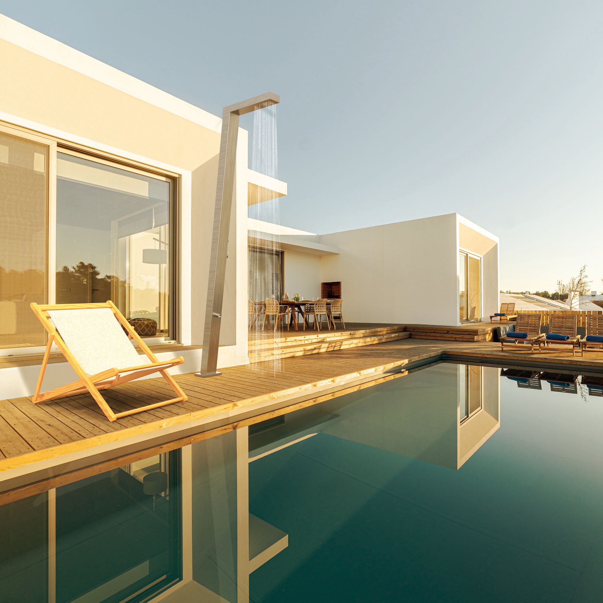 Selbst in Poolnähe oder in Küstenregionen bleibt das Material dauerhaft stabil, sicher und optisch hochwertig. Auch bei intensiver Sonneneinstrahlung oder eisigen Temperaturen behält die Dusche ihre Form und Funktion.