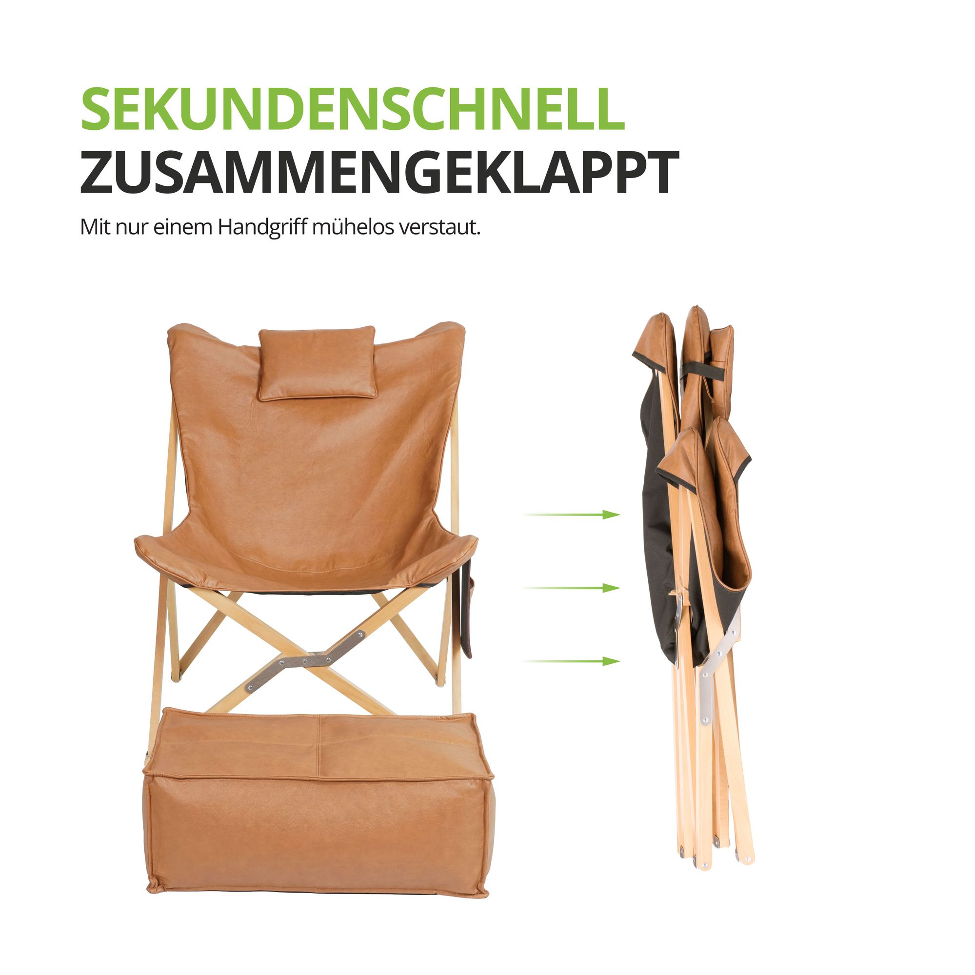 Durch die Kombination aus klappbarem Stuhl und leicht beweglicher Fußstütze lässt sich das Set schnell umstellen und an unterschiedliche Situationen anpassen – vom spontanen Gästeplatz bis zur festen Relaxzone.