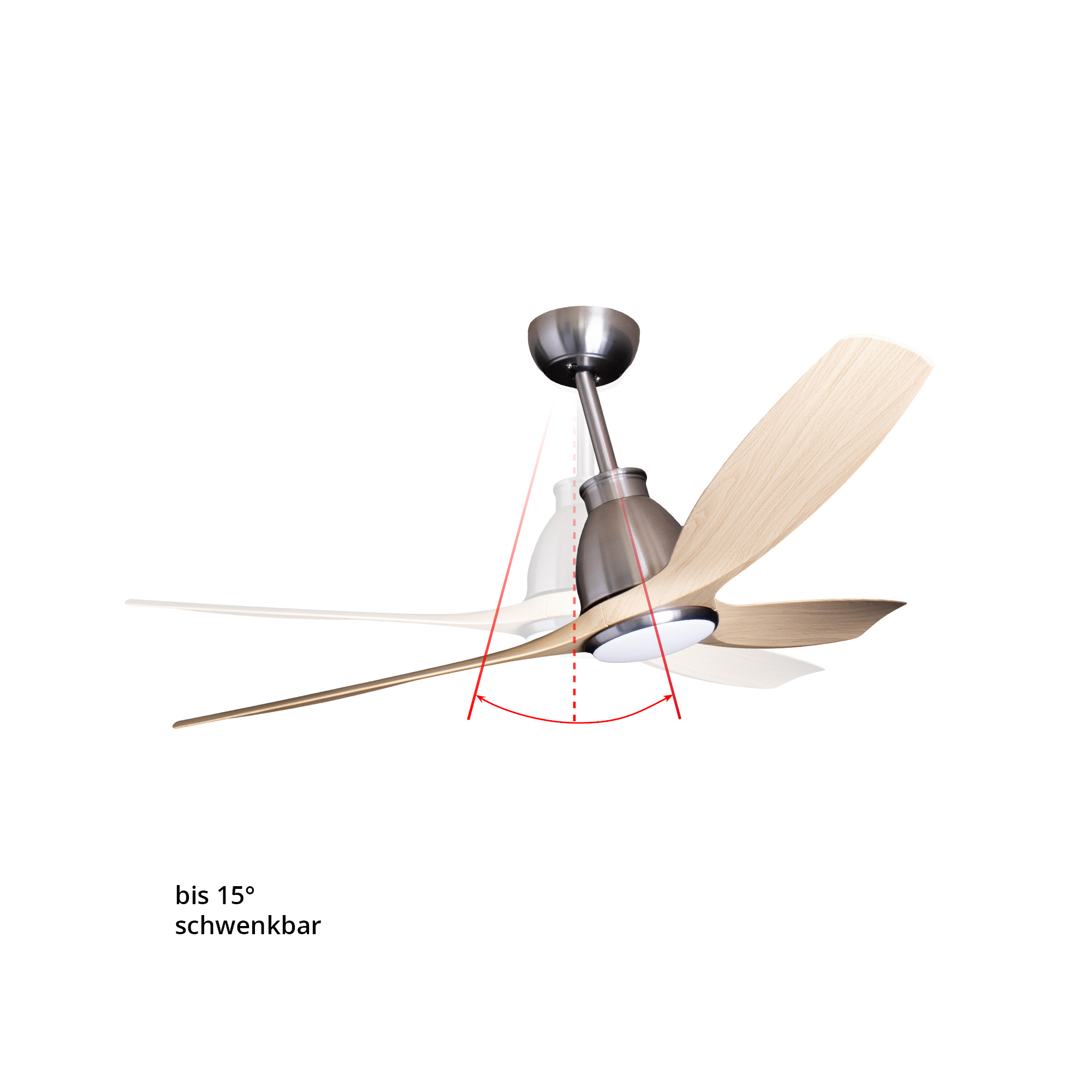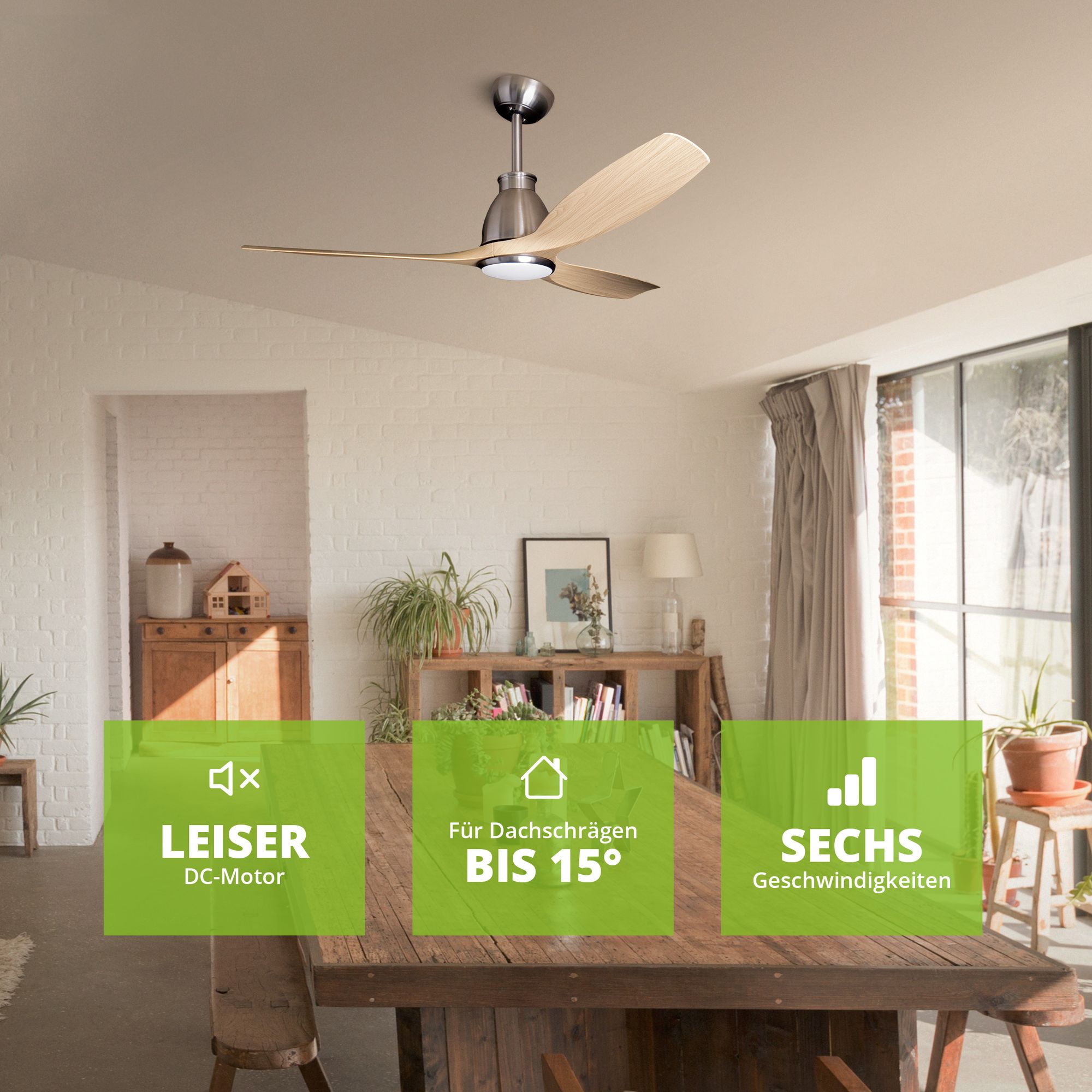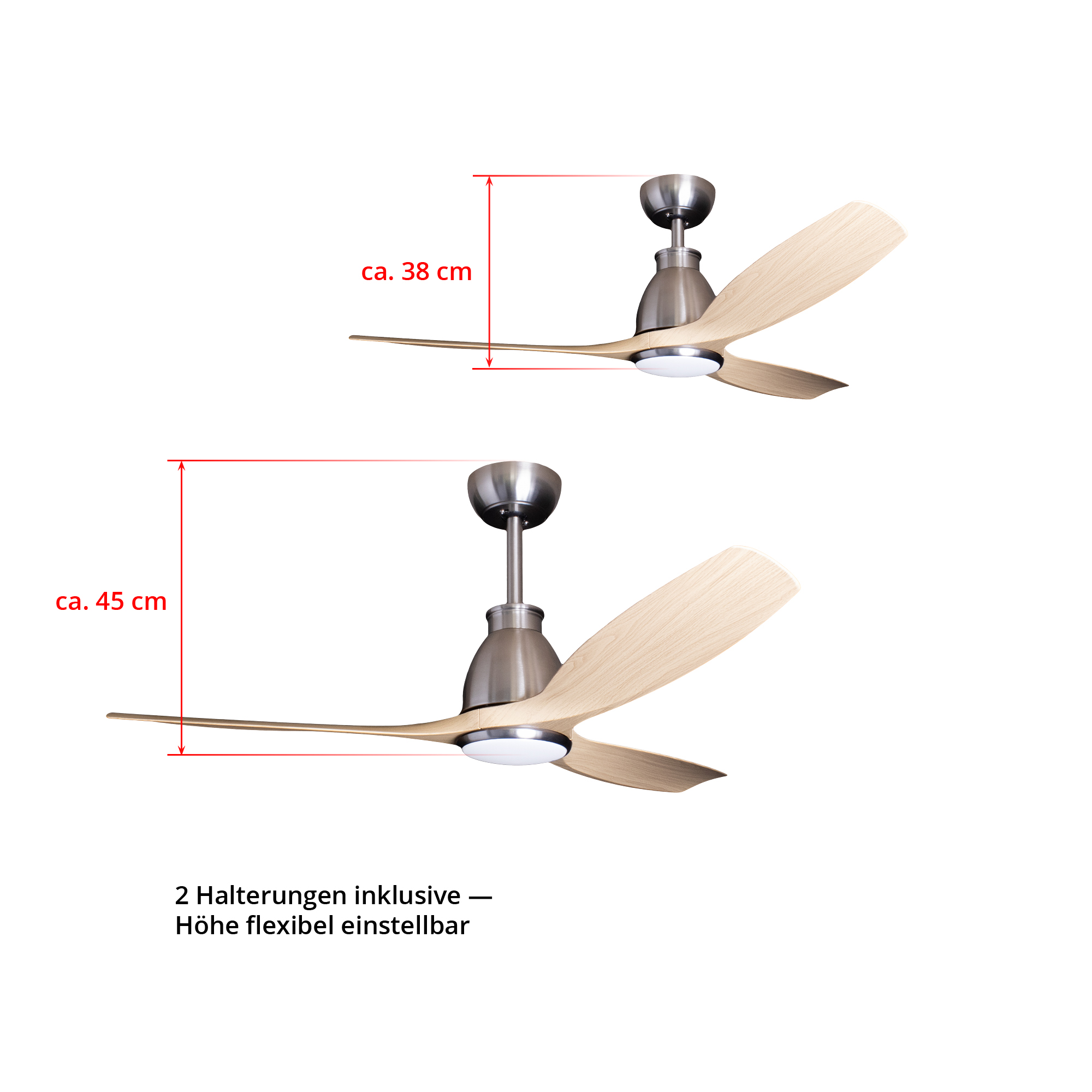 Die Rotorblätter des Modells „Veya“ bestehen aus widerstandsfähigem ABS-Kunststoff, der für seine Langlebigkeit und Formstabilität bekannt ist. Das leichte und robuste Material ist unempfindlich gegenüber Feuchtigkeit, was eine zuverlässige Nutzung über viele Jahre gewährleistet. Durch die präzise Verarbeitung entsteht eine moderne, klare Optik, die sich elegant in verschiedene Einrichtungsstile integriert und zugleich pflegeleicht bleibt.