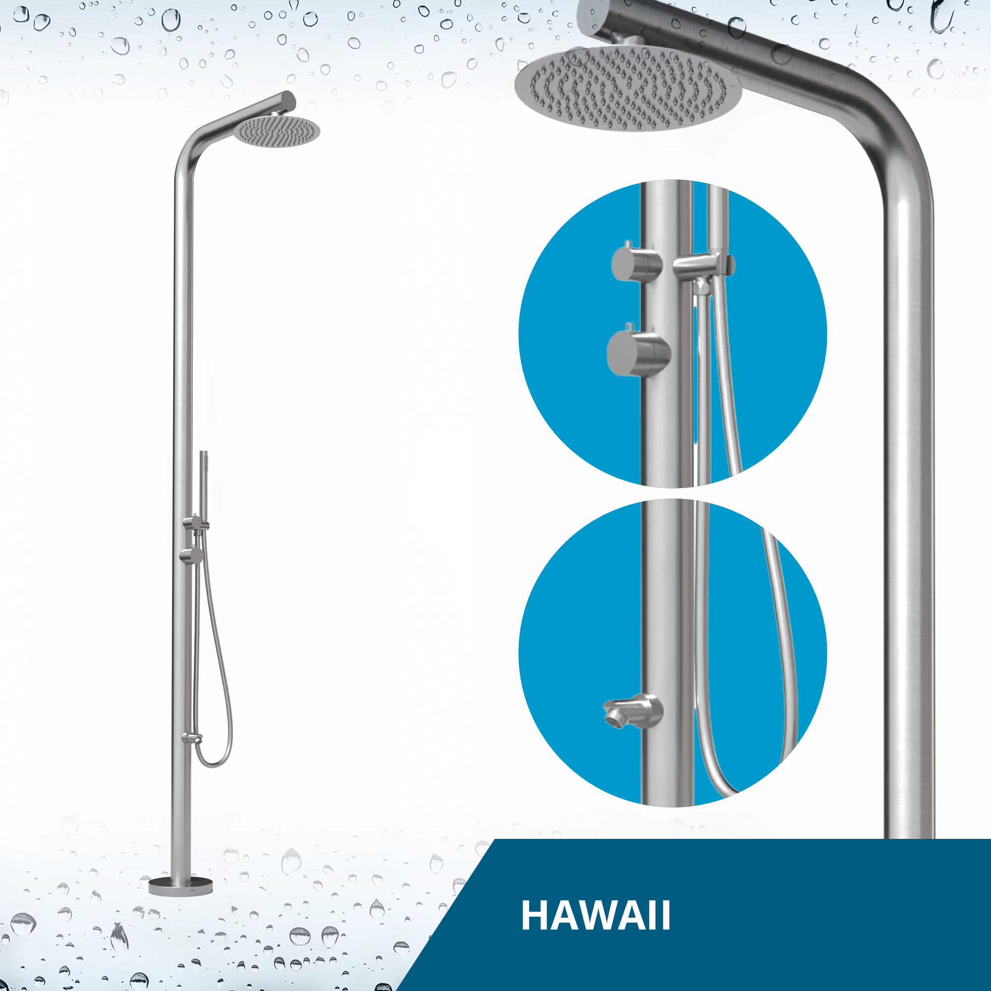 Genießen Sie das erfrischende Gefühl von Wasser unter freiem Himmel mit der Designer-Außendusche "HAWAII".