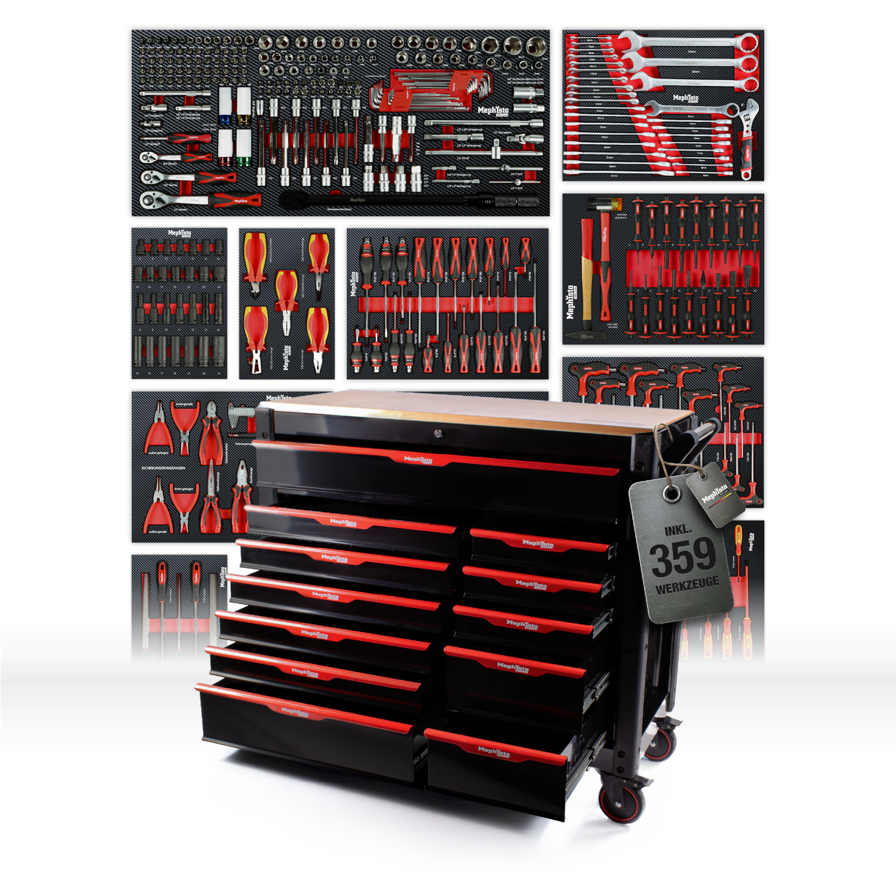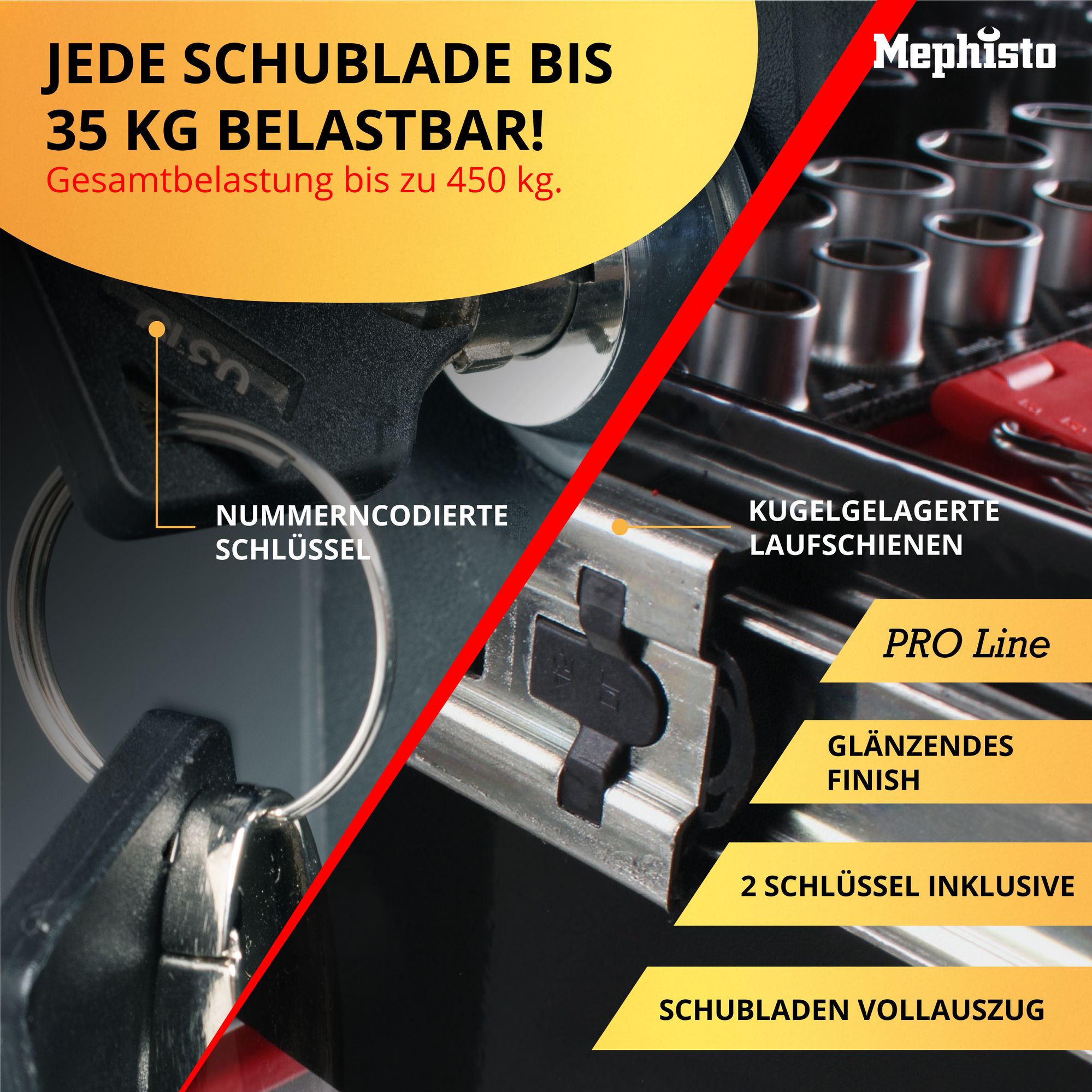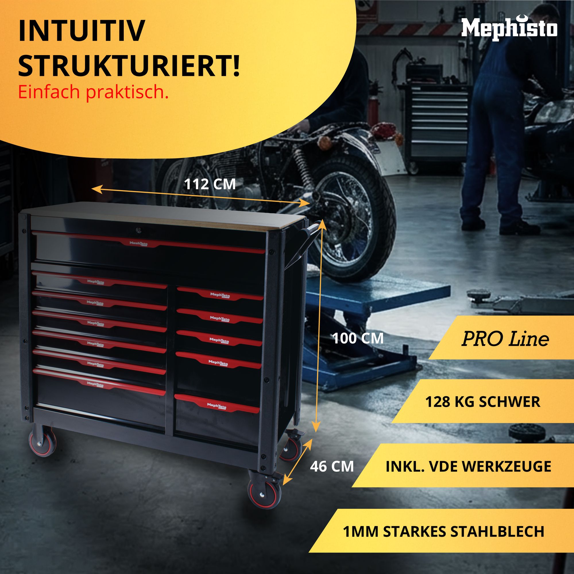 Pro-Line Werkzeugwagen von Mephisto-Tools 12 Schubfächer inkl. Werkzeug (beste Ausstattung zum besten Preis)