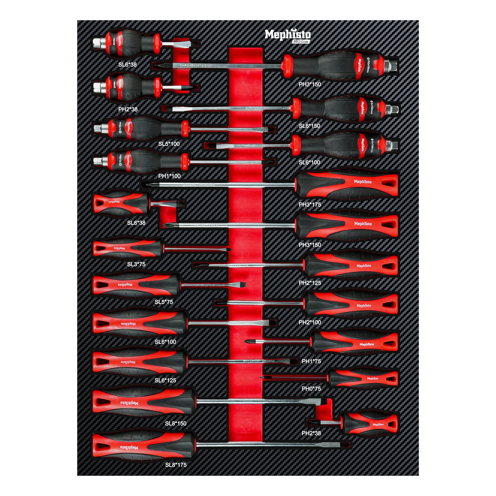 - 7 x Kreuzschlitzschraubendreher: PH2*38 PH0*75 PH1*75 PH2*100 PH2*125 PH3*150 PH3*175