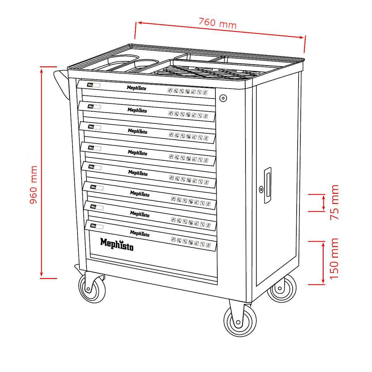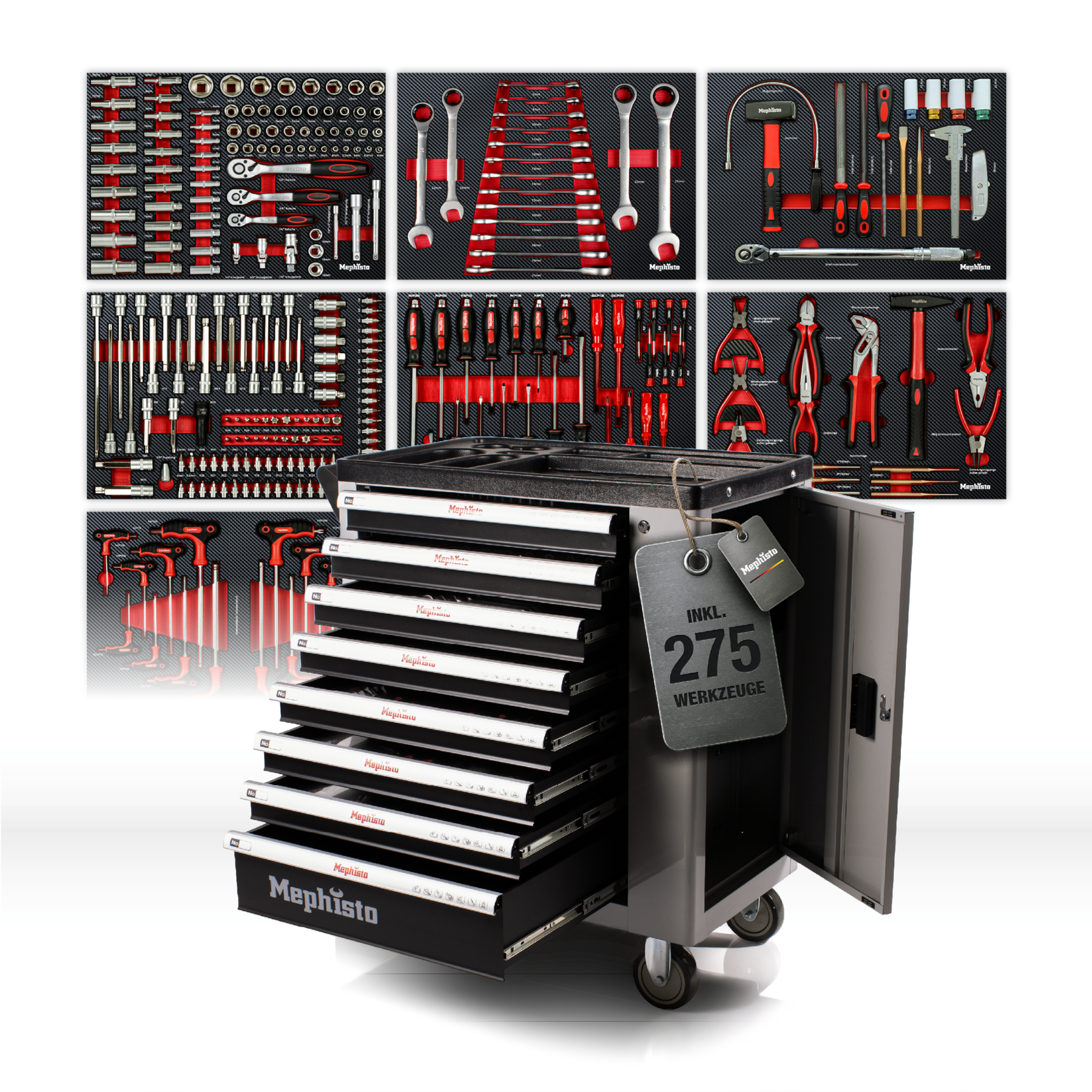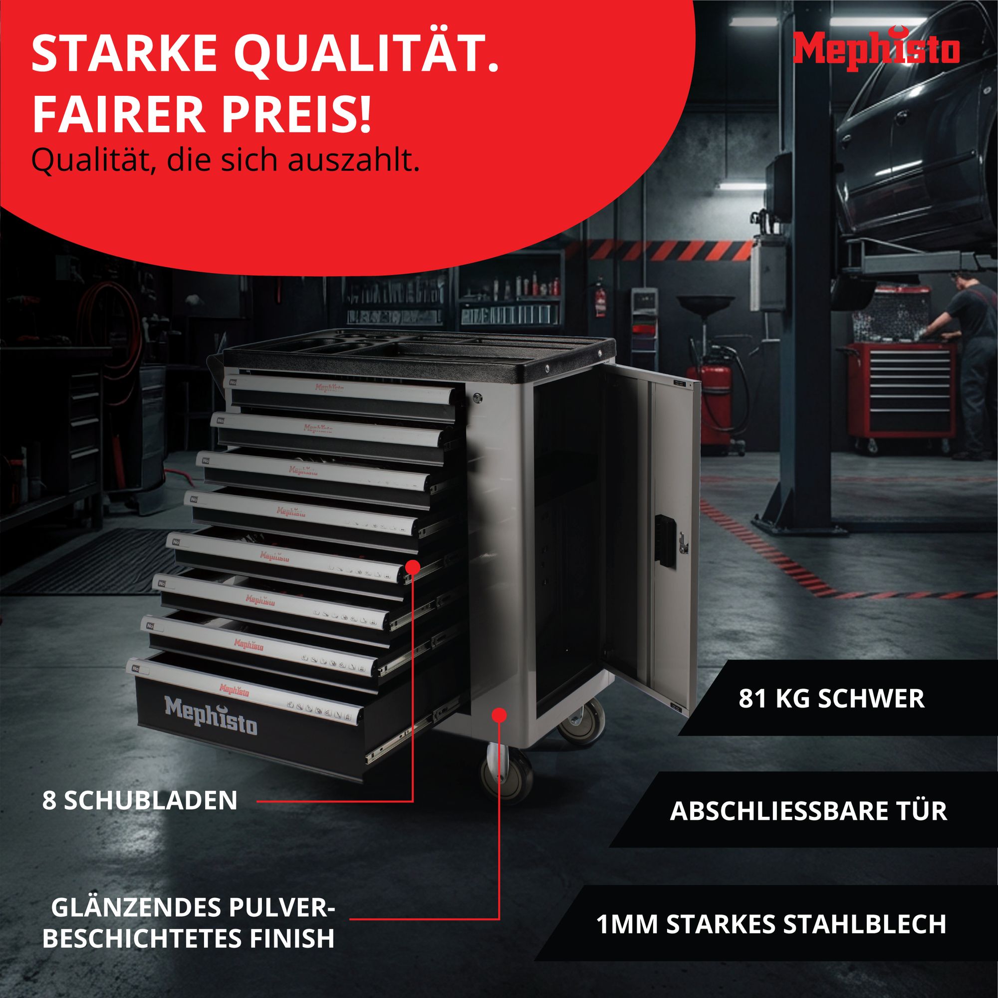 Premium XXL-Werkzeugwagen von Mephisto-Tools 7/8 Schubfächer mit Werkzeug (beste Ausstattung zum besten Preis)