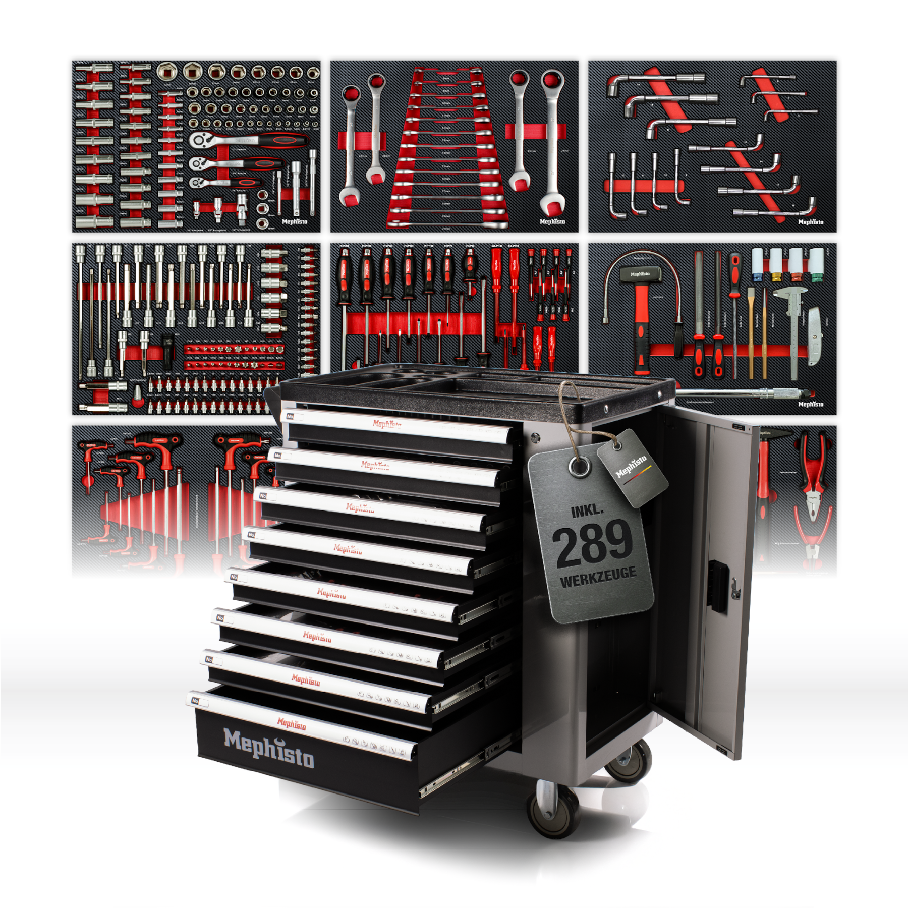 Premium XXL-Werkzeugwagen von Mephisto-Tools 7/8 Schubfächer mit Werkzeug (beste Ausstattung zum besten Preis)