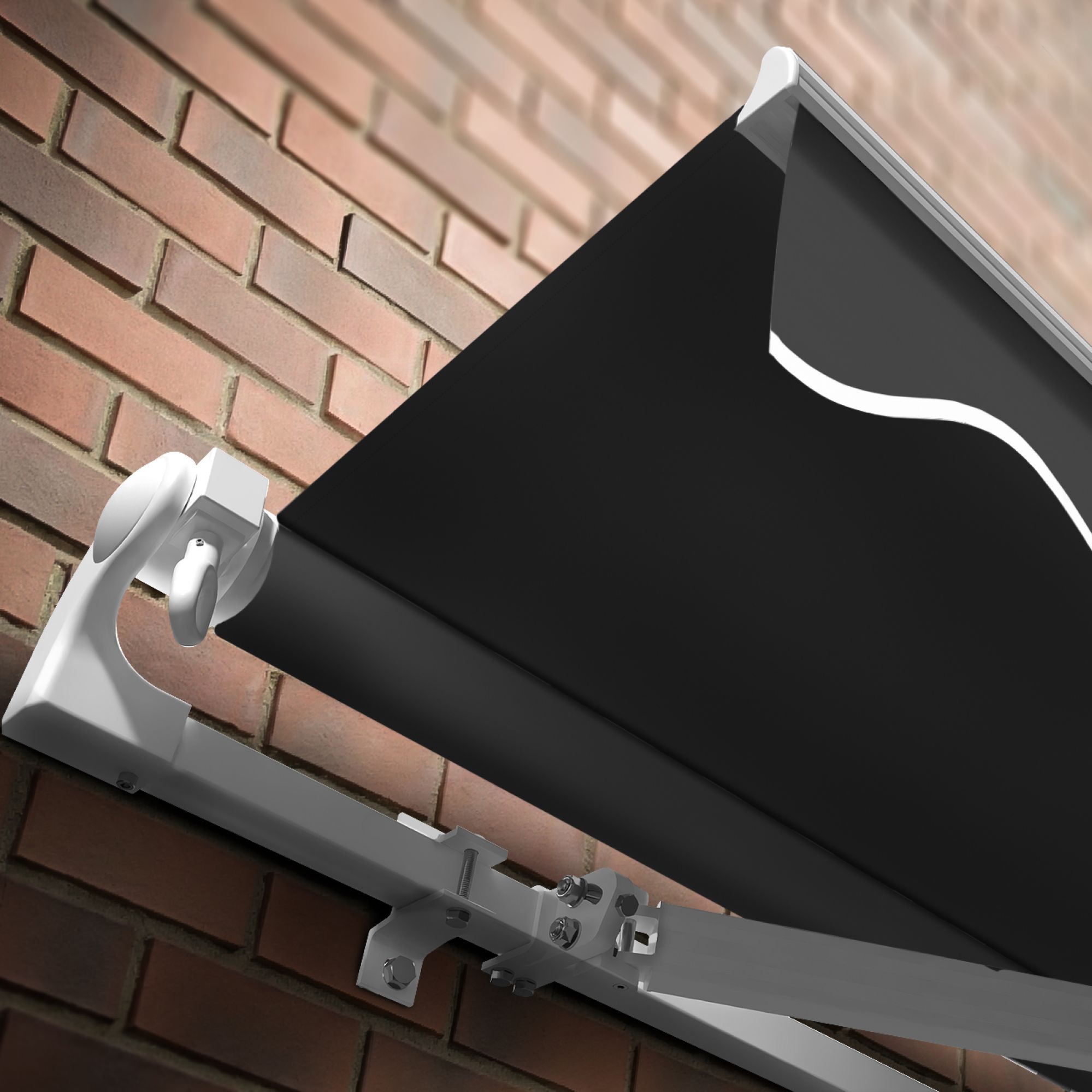 - Wandhalterungen sind aus Aluminium, mit gleichfarbigem, zur Markise passenden Pulverlack beschichtet