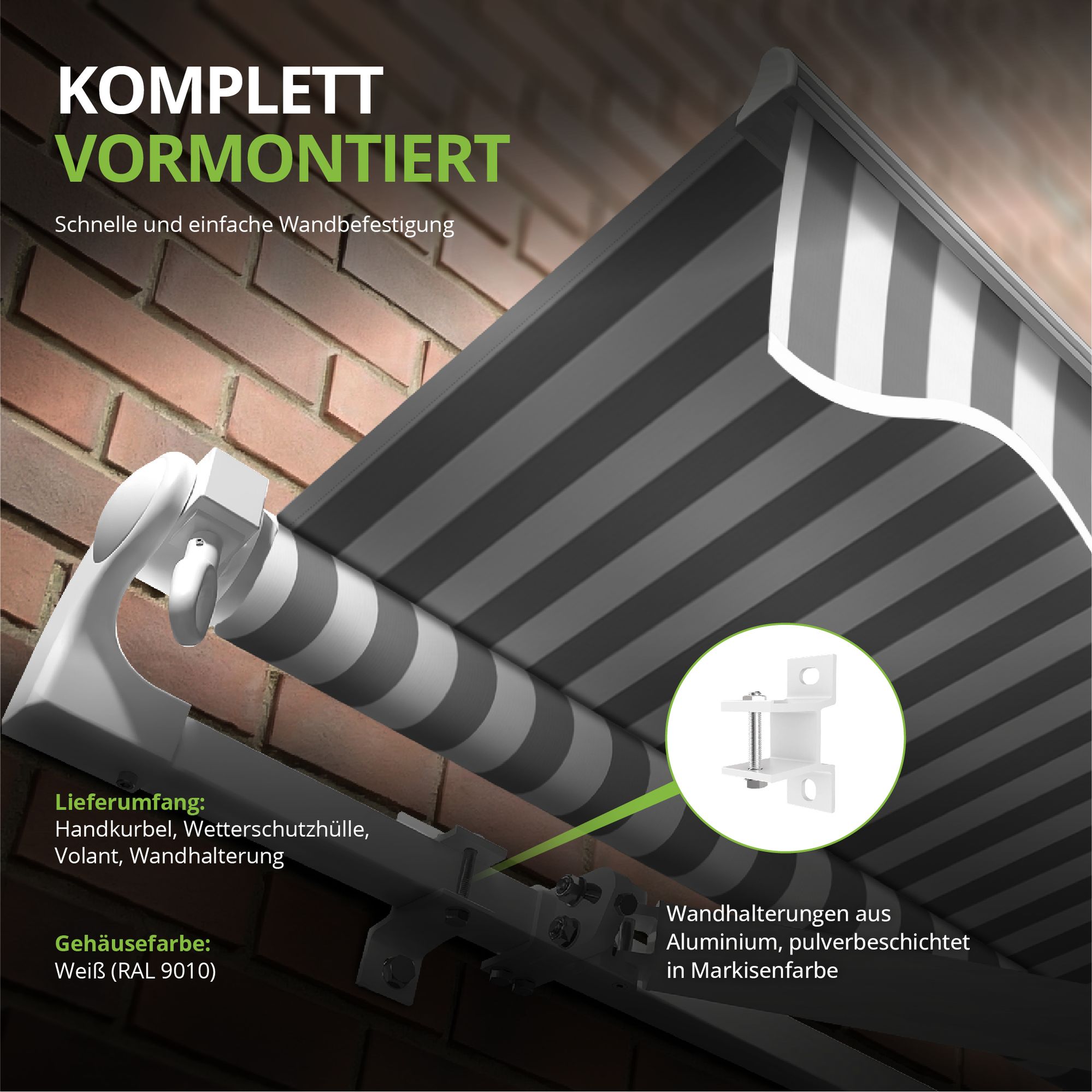 Markise inkl. Wetterschutzhülle - Handkurbel - Wandhalterung - Volant
