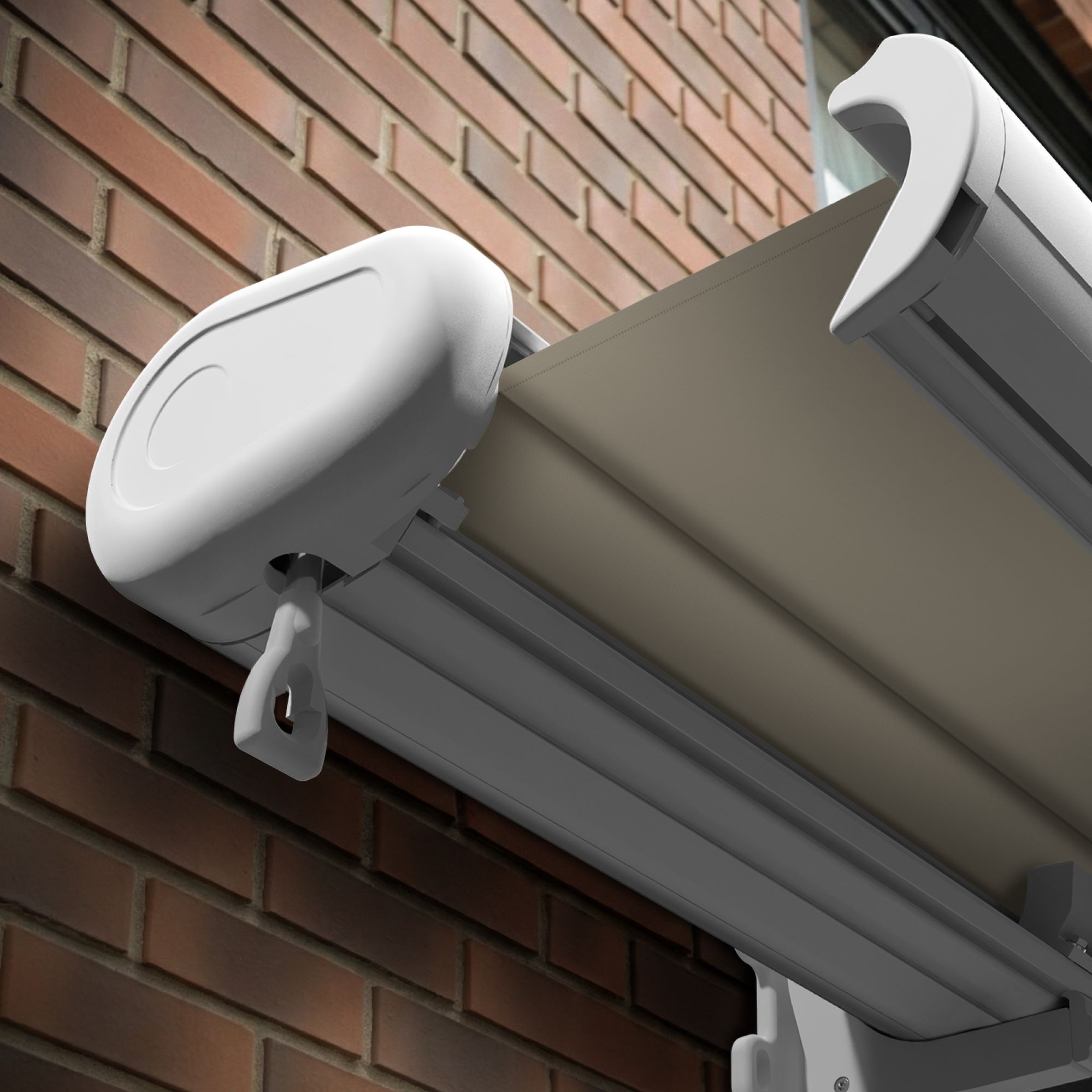 Die Markise verfügt über eine robuste Aluminium-Kassette und hochwertige Aluminium-Gelenkarme mit Doppelseilzug.