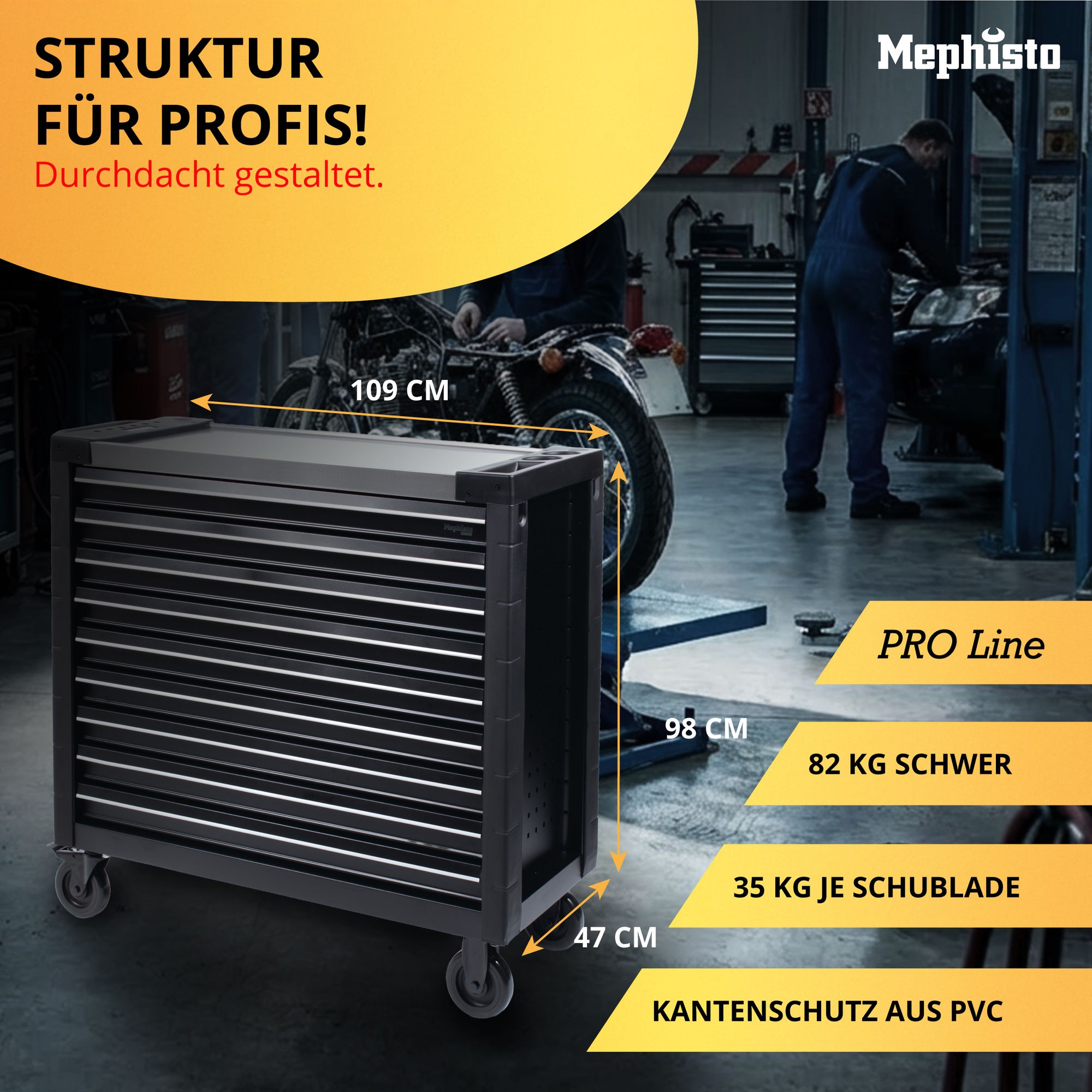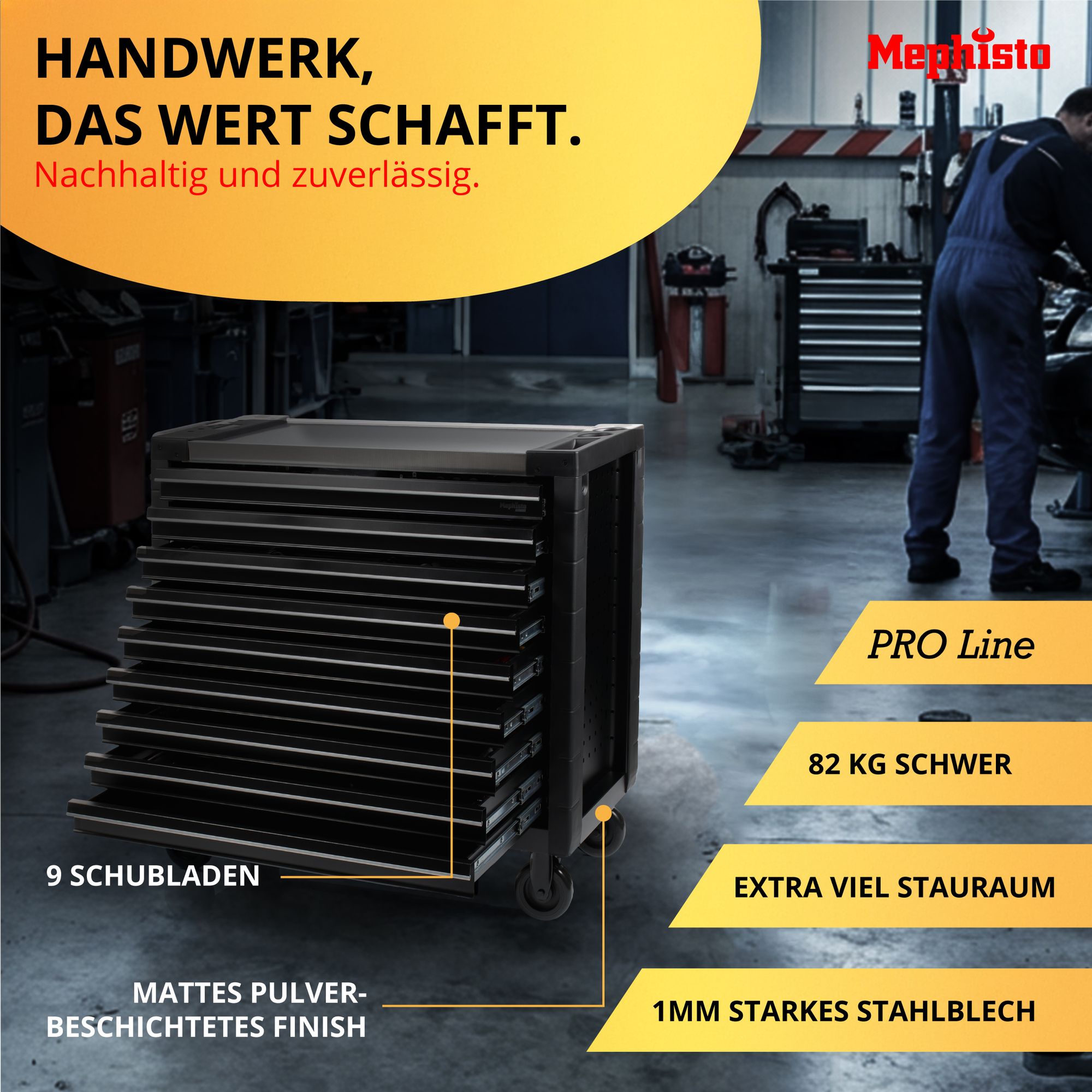 Pro Line "Big Black" Werkzeugwagen von Mephisto-Tools 9 Schubfächer exkl. Werkzeug