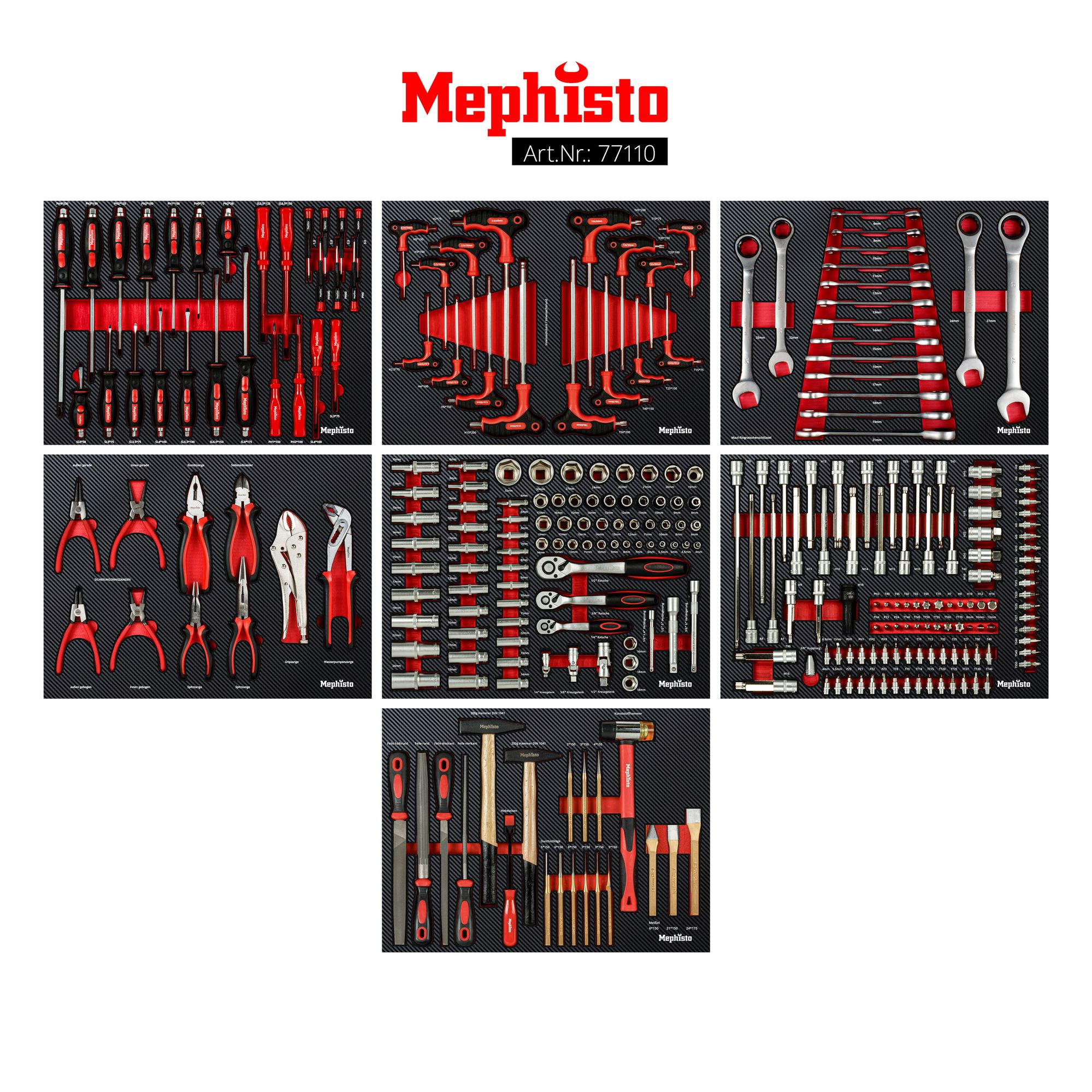- 7 x Kreuzschlitzschraubendreher: PH2x38 mm / PH0x75 mm / PH1x100 mm / PH2x100 mm / PH2x125 mm / PH3x150 mm / PH4x200 mm